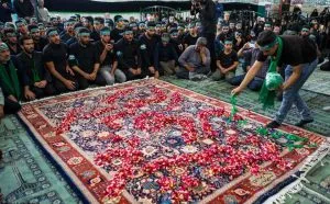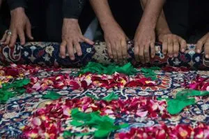 Qālišuyān rituals are practised in Iran to honour the memory of Soltān Ali, a holy figure among the people of Kāšān and Fin. According to legend, he was martyred, and his body found and carried in a carpet to a stream, where it was washed and buried by the people of Fin and Xāve. Today, Soltān Ali mausoleum is the site of a ritual where a carpet is washed in the holy stream by a huge gathering. It takes place on the nearest Friday to the seventeenth day of the month of Mehr, according to the solar-agricultural calendar. In the morning, people of Xāve gather at the mausoleum to sprinkle rosewater on the carpet. Having completed the wrapping rituals, they deliver it to the people of Fin outside, who rinse the carpet in running water, and sprinkle rosewater drops with neatly cut and beautifully decorated wooden sticks. The carpet is then returned to the mausoleum. People of Kāšān contribute a prayer-carpet and the people of Našalg celebrate their ritual the following Friday. These communities maintain oral transmission of the procedures, but also recreate the tradition by adding new and festive elements.