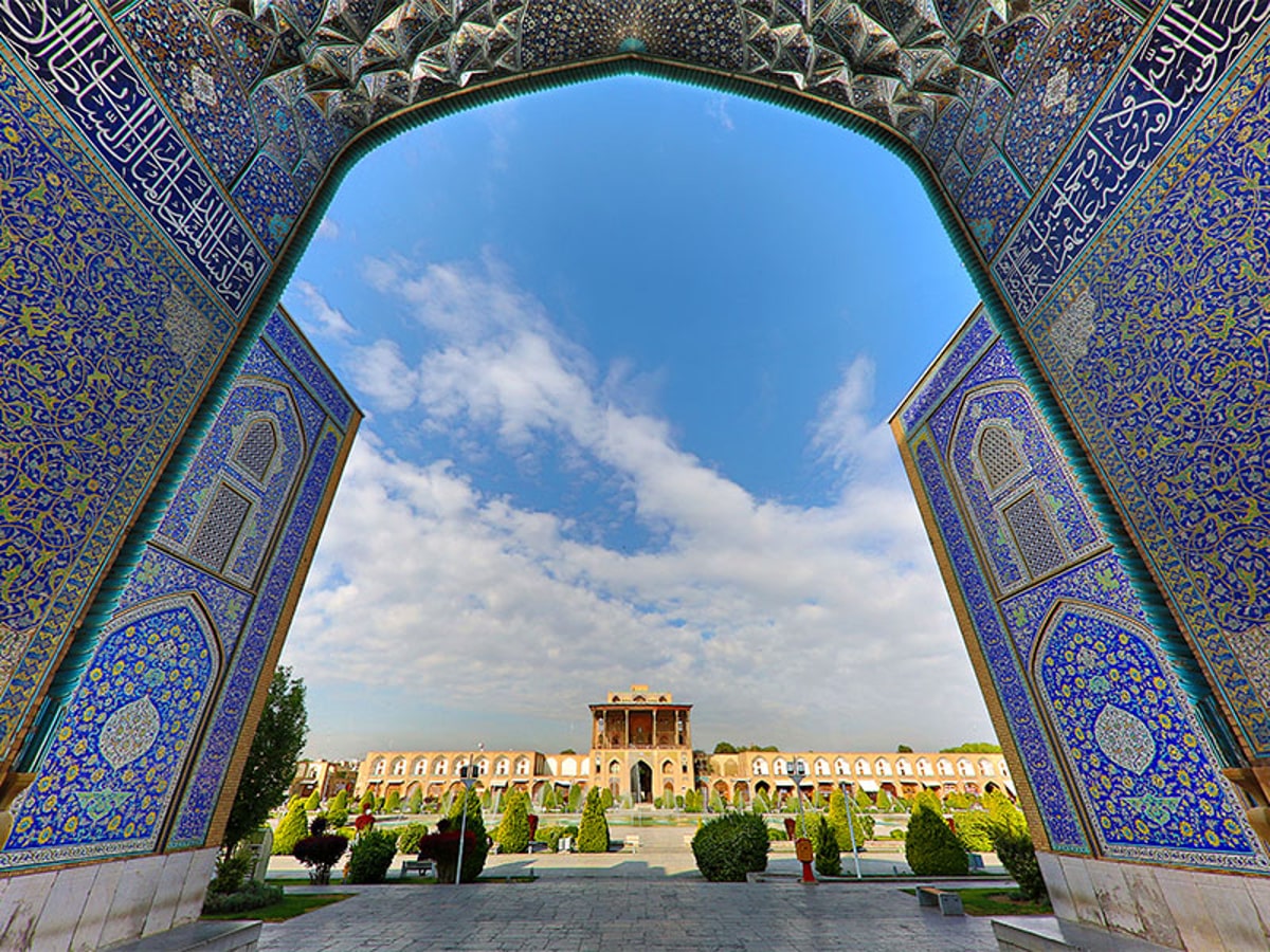 Criterion (i): The Meidan Emam constitutes a homogenous urban ensemble, built over a short time span according to a unique, coherent, and harmonious plan. All the monuments facing the square are aesthetically remarkable. Of particular interest is the Royal Mosque, which is connected to the south side of the square by means of an immense, deep entrance portal with angled corners and topped with a half-dome, covered on its interior with enamelled faience mosaics. This portal, framed by two minarets, is extended to the south by a formal gateway hall (iwan) that leads at an angle to the courtyard, thereby connecting the mosque, which in keeping with tradition is oriented northeast/southwest (towards Mecca), to the square’s ensemble, which is oriented north/south. The Royal Mosque of Esfahan remains the most famous example of the colourful architecture which reached its high point in Iran under the Safavid dynasty. The pavilion of Ali Qapu forms the monumental entrance to the palatial zone and to the royal gardens which extend behind it. Its apartments, completely decorated with paintings and largely open to the outside, are renowned. On the square is its high portal (48 metres) flanked by several storeys of rooms and surmounted by a terrace (tâlâr) shaded by a practical roof resting on 18 thin wooden columns. All of the architectural elements of the Meidan Imam, including the arcades, are adorned with a profusion of enamelled ceramic tiles and with paintings, where floral ornamentation is dominant – flowering trees, vases, bouquets, etc. – without prejudice to the figurative compositions in the style of Riza-i Abbasi, who was head of the school of painting at Esfahan during the reign of Shah Abbas and was celebrated both inside and outside Persia.