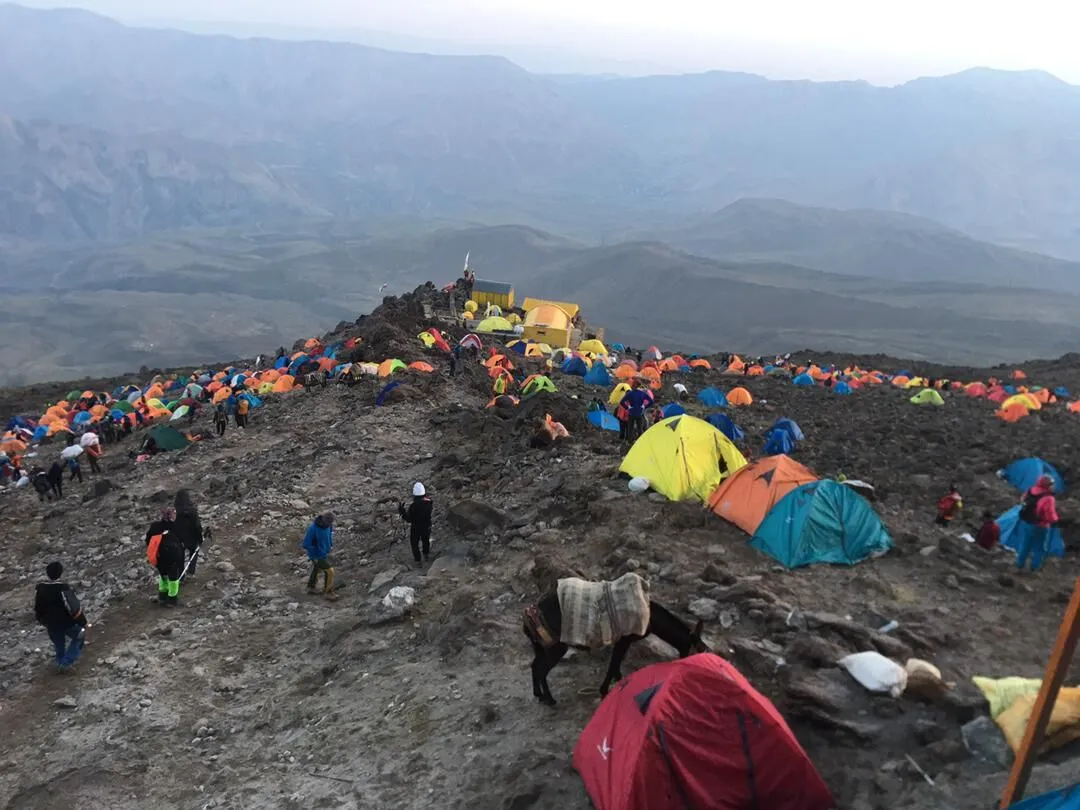 Summit Mt Damavand (5671m) and descend to Bargah Sevom (4200m) Overnight in camp. (Ascended altitude: 1471m) (Descended Altitude: 1471m)