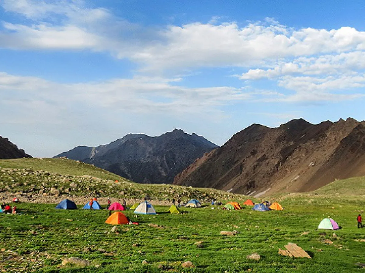 Transfer to Tange Galoo (3200m) with 4*4 and start trekking to Hesarchal (3750m). Overnight in Camp. (Around 1-hour drive) (Ascended altitude 1500m).