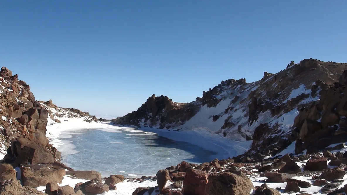 The summiting day. Summiting Mount Damavand (5610m) and ski down. Returning to Bargah Sevom. Overnight in the shelter.