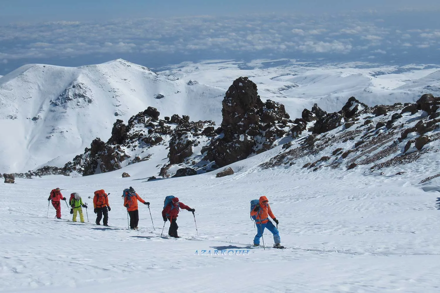 The program includes ascending Damavand (5671 meters) and Sabalan (4811 meters) by ski. Damavand is the highest mountain in Iran with a cultural significance. It is mentioned in Iranian mythology that the border of Iran was determined by an arrow that was thrown from this mountain.